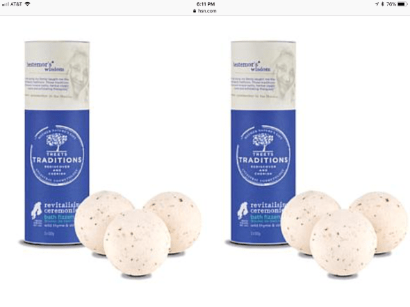 Tomorrow night at 7:00 some of the products will be highlighted on Home Shopping Network on THE BEAUTY REPORT. Rian Van Velazquez, the creator of these products will be on air to describe and show them. Janet says the bath bombs and gift set will be featured but that HSN will have the whole line of lotions, creams, shower gels and the like.
