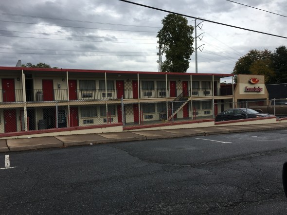 So today I drove up so I could have some extra time with my Michie cousins, Margy, Ellen, Mary, Leigh, Sarah, Janie Leigh and Ava. The last time we came to Charlottesville for a Michie memorial service it was a UVA football weekend. Mary and I and our families could only find rooms at the worst motel, not just in C’ville, not just in Virginia, but I reckon in all of America. It was an Econolodge we nicknamed “the chicken motel” because it was more like a chicken coop than a hotel. It was so bad I had to go to the Kmart next door and buy new sheets and pillows. The amazing thing is it is still in business so I had to take a photo for Carter who still uses it as the barometer of how bad a motel can be.