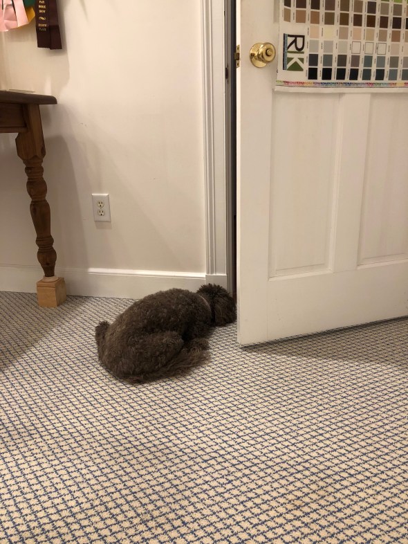 I know we are crazy for our dog and she does seem to make a good subject. I am wondering how many more portraits I can display of her. So far she has not out “posed” my college dog Beau. I shave a painting in the sun room my mother did of Beau and a Needlepoint pillow in the living room she also stitched for me. I guess I should Needlepoint something of Shay so she will not feel underrepresented in the pillow category. I do think I have a couple of Christmas ornaments where Shay is stitched, but they are more like brown dogs that could be any dog, not specifically Shay.