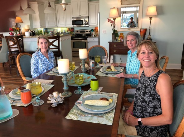 After it was all over Reba came back and and helped clean up all the snacks and we went back to her home to enjoy cocktails. My friend Christy came up from Beaufort to join us for Reba’s yummy crab cake dinner. Christy volunteered to come help at the class for the next two days so the new players will have more advice while they are playing.
