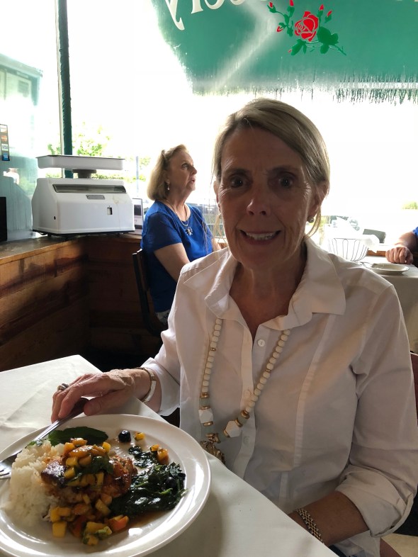 Everyone here has been so nice and has made teaching them a pleasure. Joan, who is in my beginner class, knowing that Christy and I would only have a few minutes break between the advanced and beginner classes made lunch for us. The advanced class went over by a half an hour so we ran up to Reba’s Condo and Joan had our lunch set on the table all ready to go.