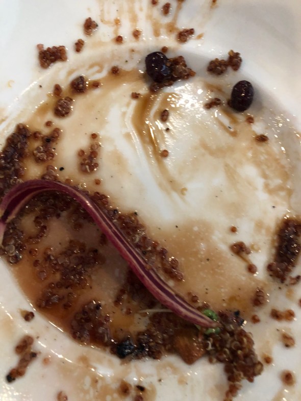 The cauliflower came and the four of us wasted no time enjoying it. Sadly I dropped one of my two pieces of cauliflower on the floor. One friend asked if it would be OK if she licked the bowl. No one thought it was out of the question.