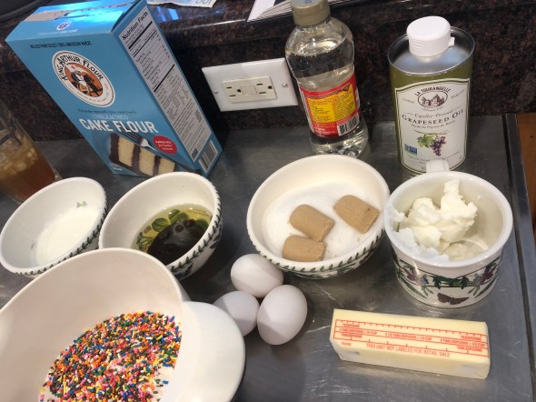 Today she made the cake portion of her Christmas Birthday cake from the very complicated Milk Bar cookbook. She set up her mis en place which was way more organized than I ever am when I bake. Afterward she even washed her equipment in an organized fashion.