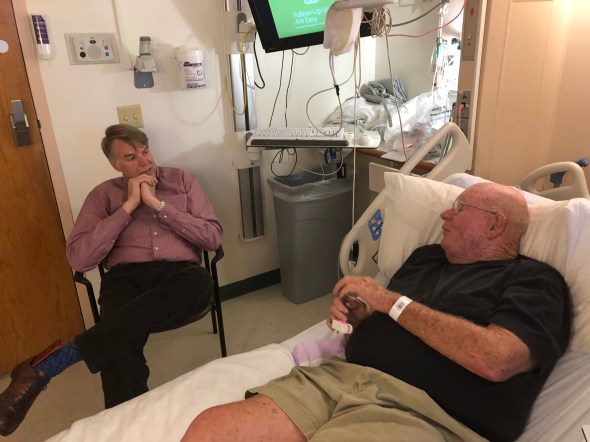 There is a closeness you get when you take care of a parent in the hospital. It is different than any previous stage in your relationship. Somehow it is the switching roles, where you are more the parent and they are more the baby. In my case it is a baby with attitude and a sailor’s vocabulary. Spending hour upon hour in a small room together with constant visitors of varying healthcare jobs is an experience like no other.
