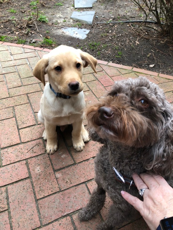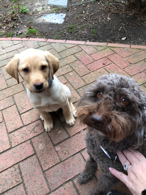 My friend Laurie had brought her new puppy, Boston, a thirteen week old lab to meet Shay. It was the perfect Valentines Day surprise for Shay. Boston was very well behaved and Shay seemed more interested in him, than she is in most dogs. I, Of course was in love with the soft puppy right away. Too bad Laurie no longer lives across the street from me for Shay and Boston could have quite a good neighborhood friendship.