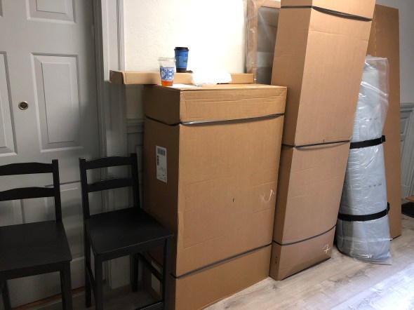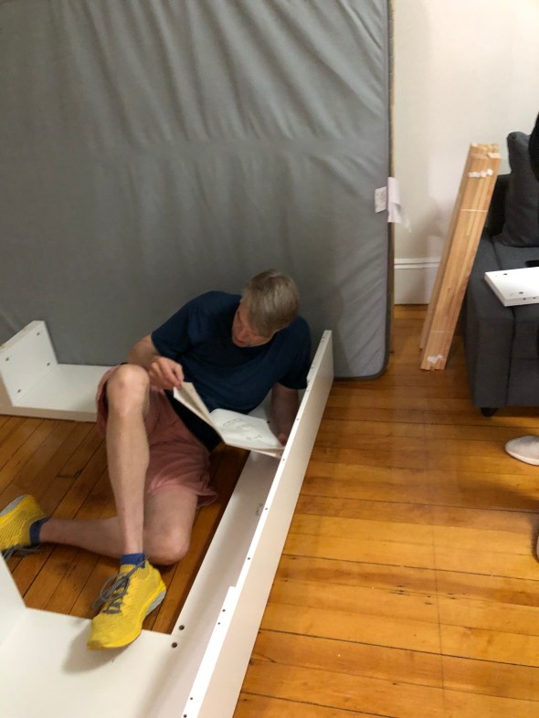 Apparently Russ and I snore in syncopation, this according to the recording Carter made of us at four in the morning in our hotel last night. None of us slept well in anticipation of today’s big move. Carter had gotten a message from the IKEA delivery service that her order of MANY boxes was coming between 9-1 and they would call her 30 minutes in advance. All fine except she was not going to have the key to her apartment until Noon.