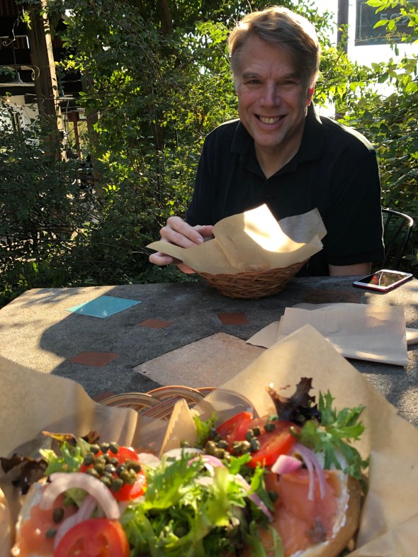 Of course we saw plenty of people we knew at the market even though we just made a quick loop gathering vegetables for the week. We were going to Foster’s for breakfast on our way home.