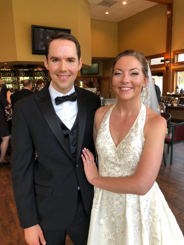 Eventually it was time to dress and go to the wedding at one of the wedding Mecca golf clubs in the area. The weather was perfect for the outdoor ceremony. Winston and Emily wasted no time getting married and then it was off to the party. We had a lovely cocktail hour where there was enough food to be our whole dinner.