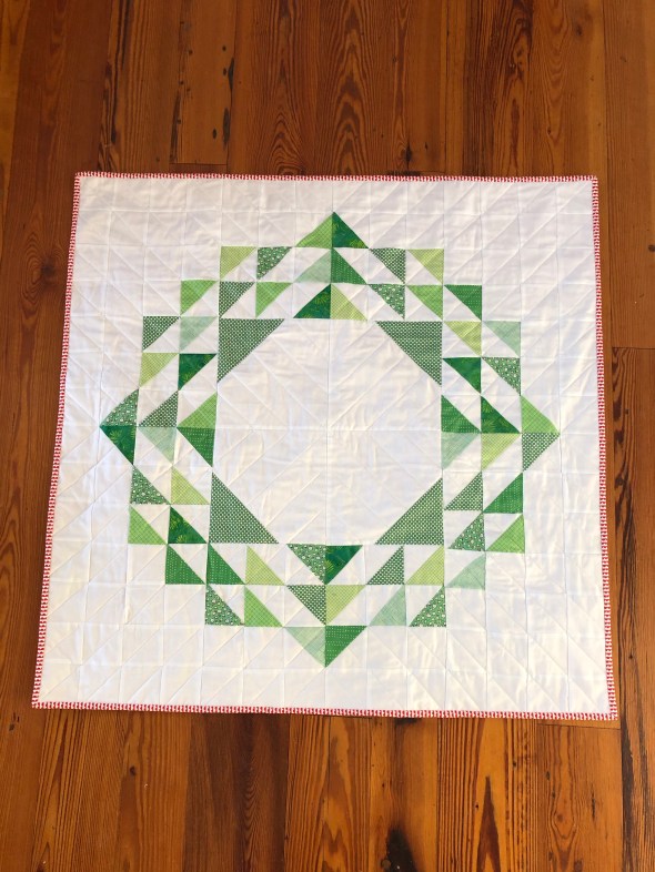 I finally finished a wreath quilt I made. It is much larger than I had intended and now I am on to making a second smaller version. The thing that takes the longest is hand sewing the binding so smaller will be better.