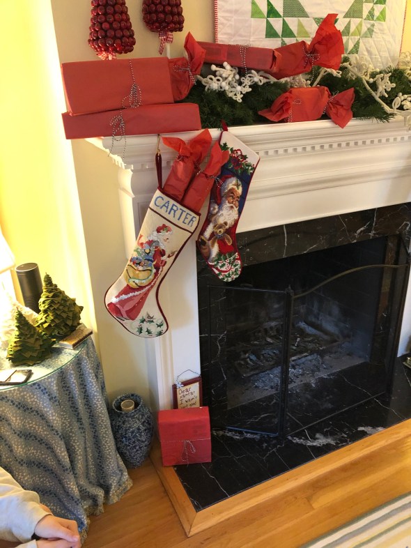 Thankfully early morning Saturday traffic was not bad and she made it to Logan and was home with us at 10:30 this morning. Now Christmas can start, it it is still ten days away and Carter is already bored here. I have a feeling the expression “slow as Christmas” is going to apply here. I am just thankful she woke up and made her flight. If she didn’t like the change charge for a ticket in advance she really was not going to like the charge for buying a whole new ticket on the day of.