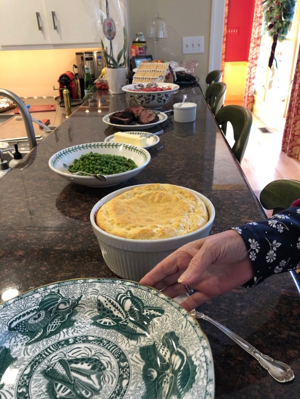I prepped the tenderloin for the grill, assembled the cherry tomato salad, and made the cheese soufflé. Carter cooked the peas and assembled the fruit and lemon tarts on the tart crusts she baked yesterday. Everyone got along. Everyone was healthy. It was the most pleasant Christmas we have had in years.