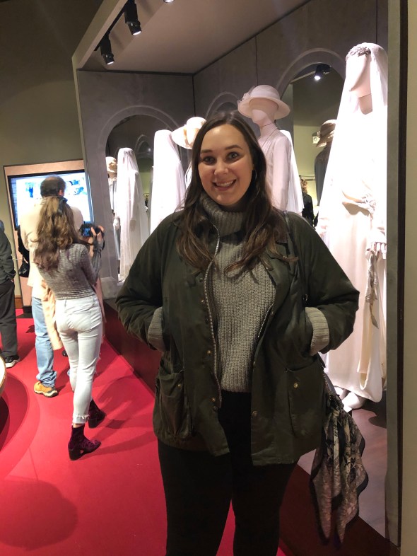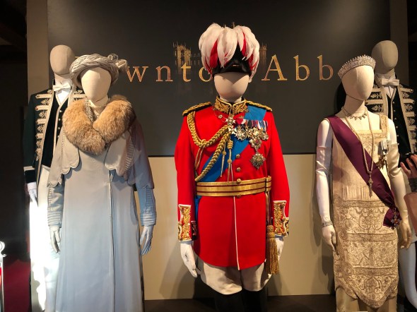 As usual, Carter and I both liked the downstairs with the kitchens and the servant areas the best. After the house we took another bus to see the Downton exhibit a the Deerpark area. Then another bus back to the main house where we were having lunch at the stables. After lunch we had one last stop to make at Antler Village to see the Downton Costumes. The line for the busses was so long, like 300 people long.