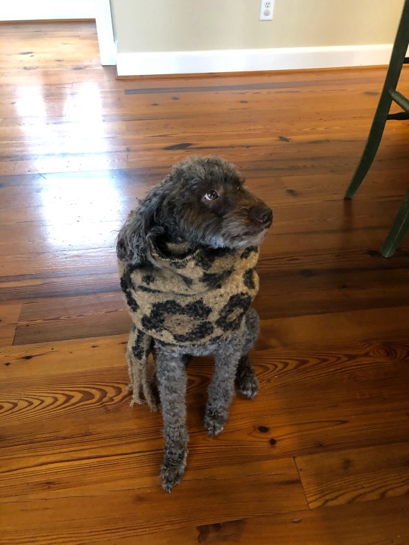 She loved posing and showing off how cute she was in the warm, soft scarf. She threw off all her Australian heritage and fully embraced her Poodle roots. That French DNA is strong. I just hope she doesn’t take up smoking and having disdain for Americans.
