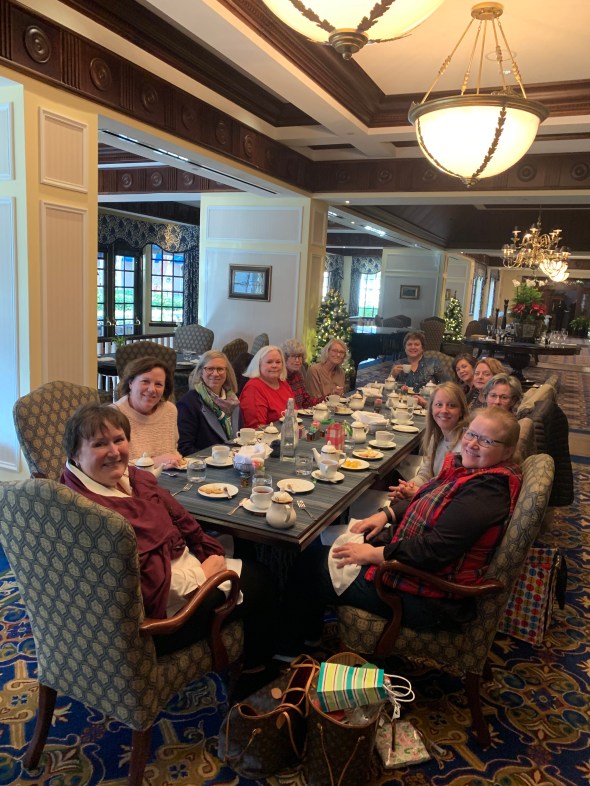The celebrating has officially begun with the annual needlepoint Christmas exchange. Always a highlight of my year. Since we traditionally gather the first Monday in December it heralds the start of the season. This year, with the the first Monday coming on the tail of the Thanksgiving weekend, I couldn’t get my house decorated as well as prepare the lunch so we opted to go to the Washington Duke for tea.