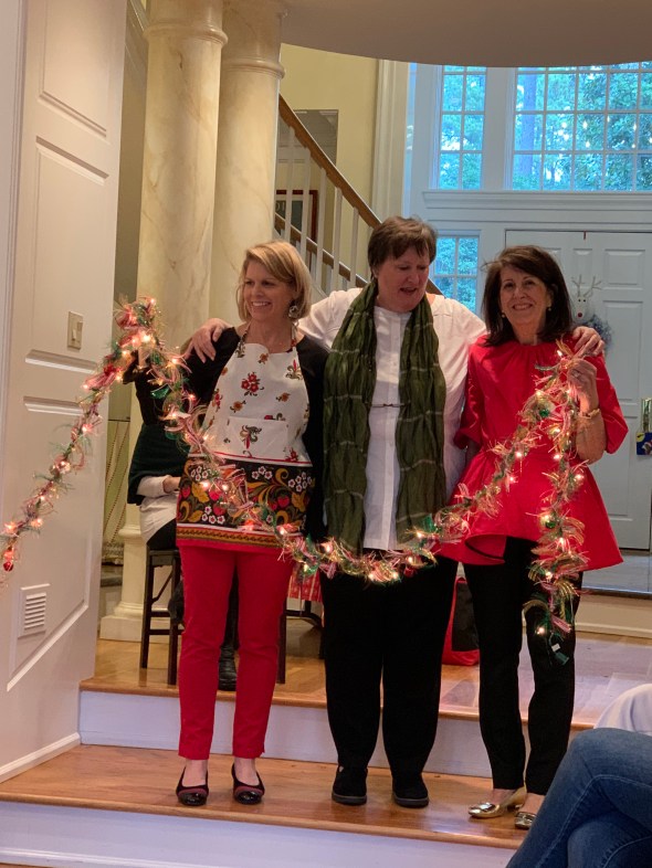 Another favorite holiday rite has come and gone, my garden club Christmas Auction. As an odd number year I did not host it at my house, but I still had my regular job as auctioneer. This year I had two elf Helpers, Stephanie Perun and Kathi Eason. They did an excellent job keeping the items coming and “Carol Merriling” them around the room so people could get a closer look at the yummy rum cake or beautiful wreath that someone had made.