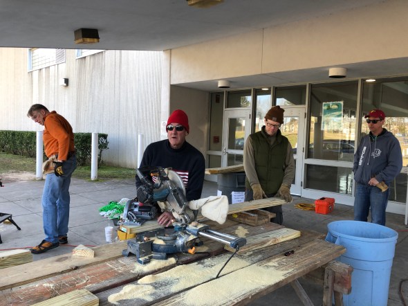 We finished the CASA baskets in record time so Russ and I drove two of our new Turkish friends to Githens middle school where we built new picnic benches while others refurbished old broken down ones.