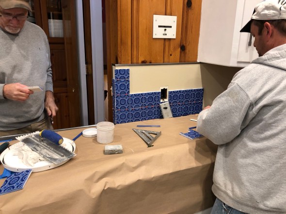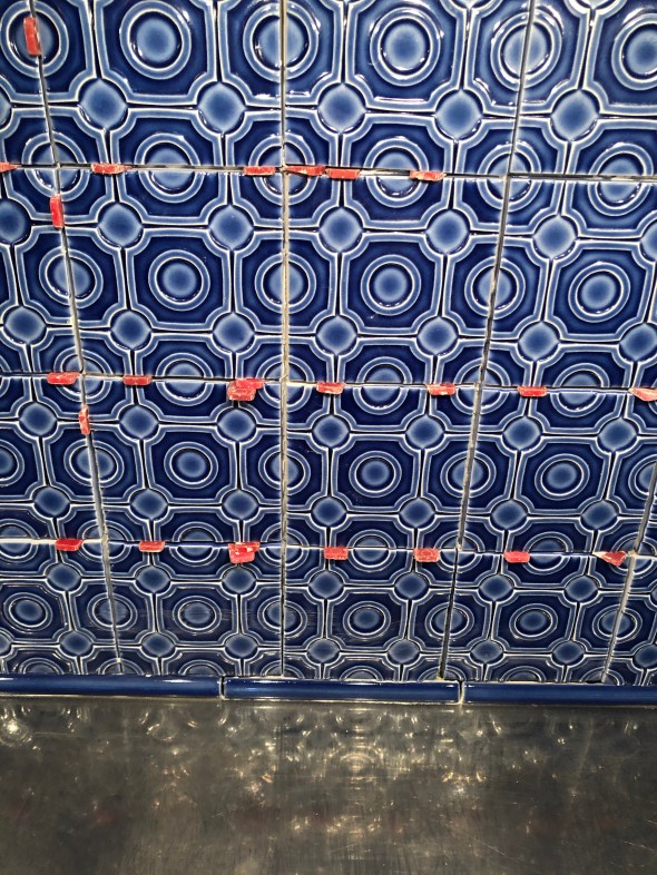 Today was the day my back splash I have been waiting seven months for was installed. It’s not actually done. It is all up with spacers still between the tiles. The grouting will happen Wednesday and that is when I will actually unveil the whole thing.