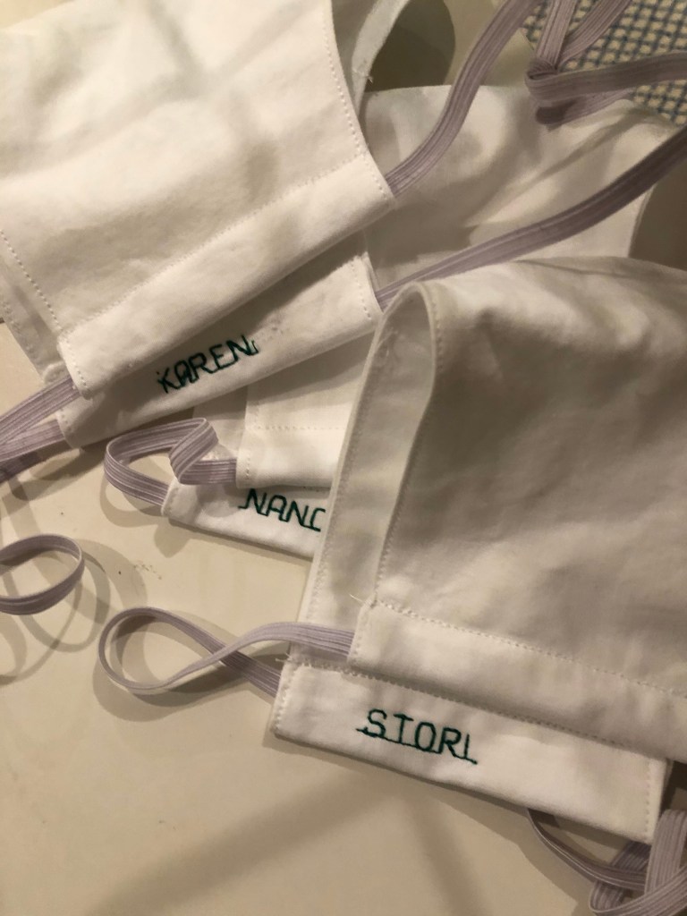 Today as I was sewing the names in I realized how many I was making for high school friends. We have been friends for over forty years now and I it makes me happy to think these masks will keep them safe. I also realize that going to a boarding school meant no home economics and none of those friends probably even has a sewing machine or knows how to sew. Thank goodness my father bought me my first machine when I was 12 along with sewing lessons.