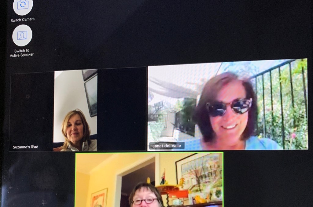 Posted: April 6, 2020 Filed under: Uncategorized Leave a commentSocial distancing did not deter us from having a birthday surprise Zoom for Stephanie Perun. Lynn Toms organized it, but still needed daughter Ellis to be the AV Department and get it up and running. Leander, Stephanie’s daughter was able to make the connection and call Stephanie to the computer so we could surprise her.