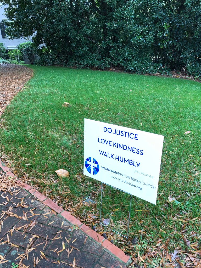 Our church decided we wanted to get in on the sign game. We have a church Motto which our former Pastor Hayward Holderness declared for us any years ago. Micha 6.8- “He has shown you, O mortal, what is good. And what does the Lord require of you? To do justice and to love kindness and to walk humbly with your God.”