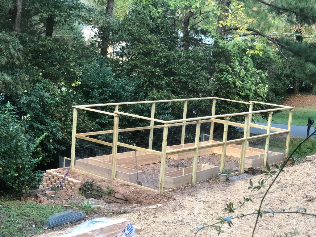 I had timed most of it perfectly. It took me about four weeks to build and fill the garden wall. Another week to build the fence. I finally found a source for the cedar I wanted to build the raised beds and ordered it. Then the supplier delayed my delivery by a couple of days due to not enough delivery drivers.