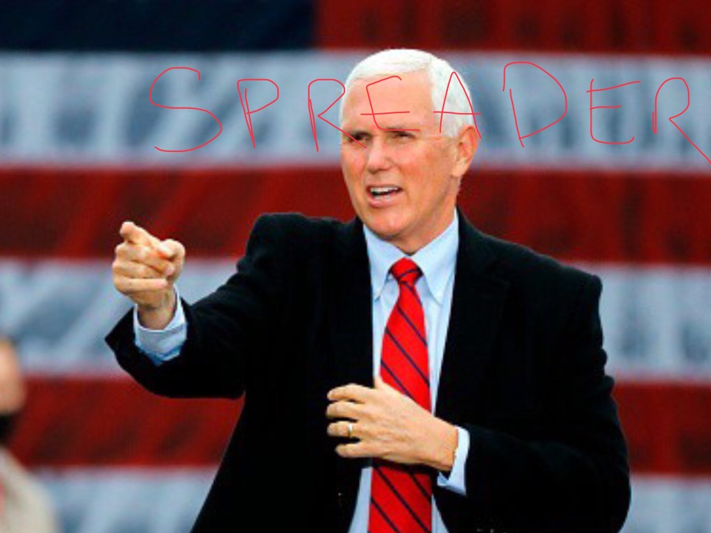 Posted: October 26, 2020 Filed under: Uncategorized Leave a commentWhen five people who work as closely with Pence as possible come down with COVID the rules say that he should quarantine. As the head of the Covid task force he knows this. So what does he do? He goes out to an in-person rally and uses the excuse that he is an essential worker. Even essential workers have to quarantine, but Pence is anything but essential at a political rally, let alone ever.