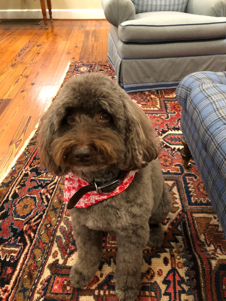 Shay still insists on looking her best for visitors or those she might greet on a walk, even if she tends to ignore most beings she encounters out in public. A jaunty bandanna or her Barbour jacket are required most days. If she wore earrings they would always be diamonds, that’s why we have refused to pierce her ears.