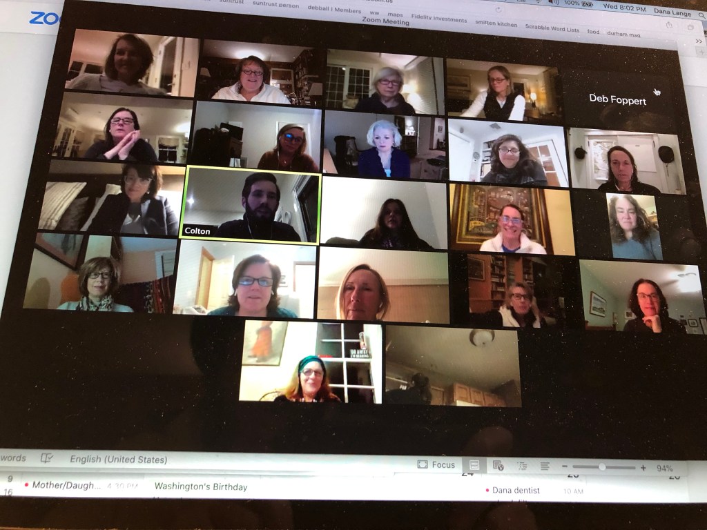 This collision of two of my worlds, late at night, when I should have been sleeping, got me even more worked up and consequently I hardly slept at all. Fast forward to tonight. Running on fumes, I had a very rare Zoom gathering late tonight. My friend Sally Schott had won a Zoom book group meeting with the author Kelly Corrigan, a fabulous writer of memoirs. We had read her book “Tell me more” and she joined Sally and 19 of Sally’s friends to talk with us.