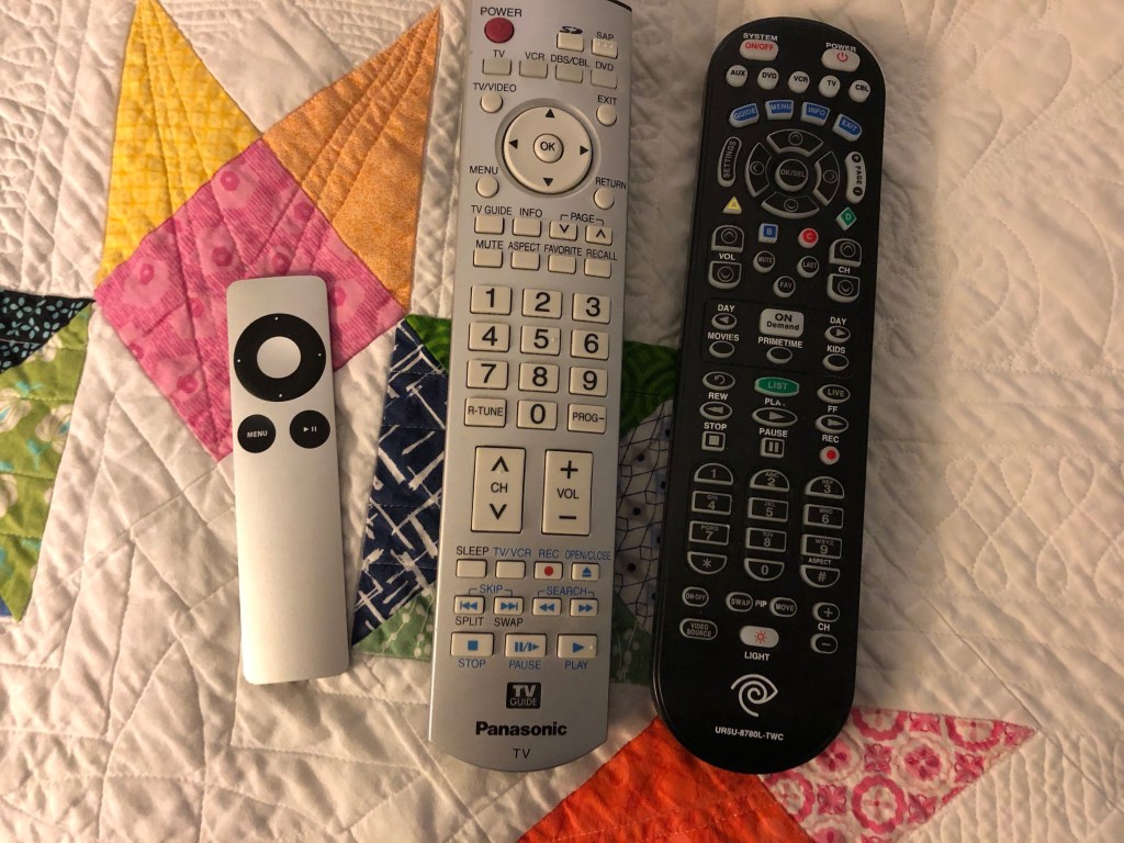 This is a rare photo, one of all three TV remotes for just one of our TVs all in the same place. I could be a much more productive person if I didn’t have to spend so much time trying to find one of these devices. Allegedly I should be able to control this one TV with just one of these items, but that requires a Ph.d I don’t have.