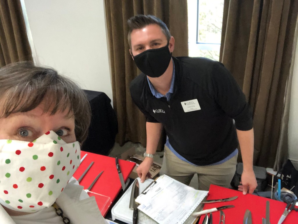 I wrapped up 28 knives in dishcloths and arrived at the Hilton Garden Inn for my allotted appointment with Cody King, a very knowledgeable Cutco expert. He was able to work magic on my 25 year old knives. A couple have to be sent back to the Factory because they are too far gone, but that lifetime Warranty is the beauty of Cutco.