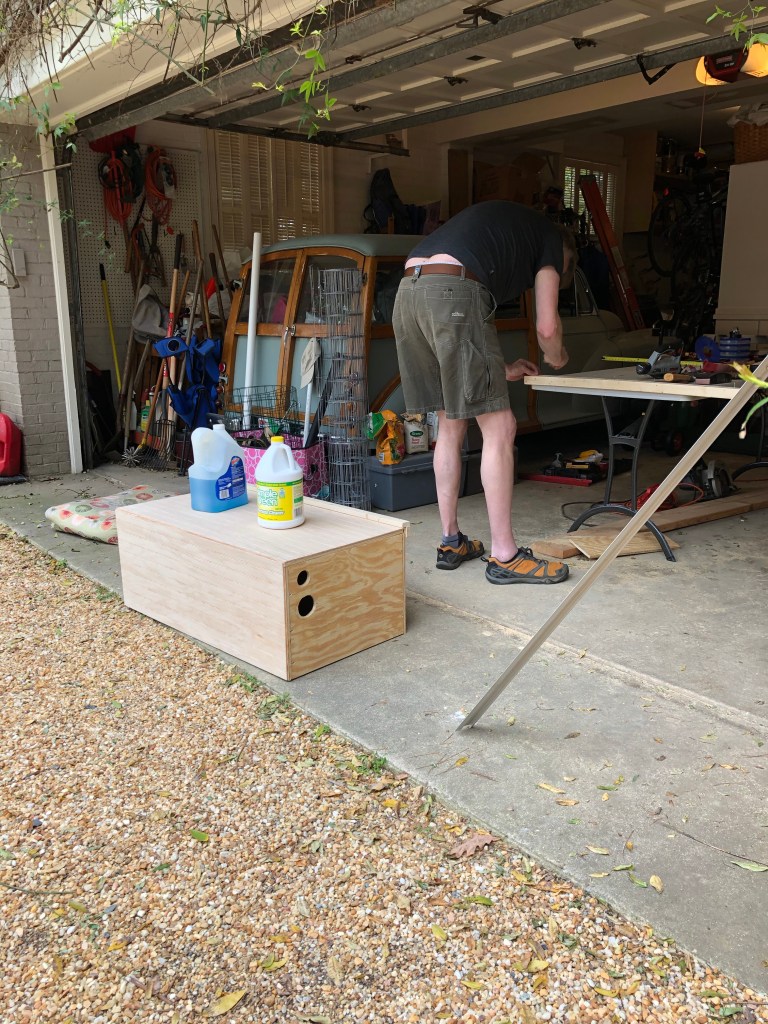 Thanks to having every power tool known to man due to years of Christmas and birthday presents from Russ’ dad we were able to make this thing. Yesterday we finished the raw wood version which I helped make and Russ turned it over to me for finishing.