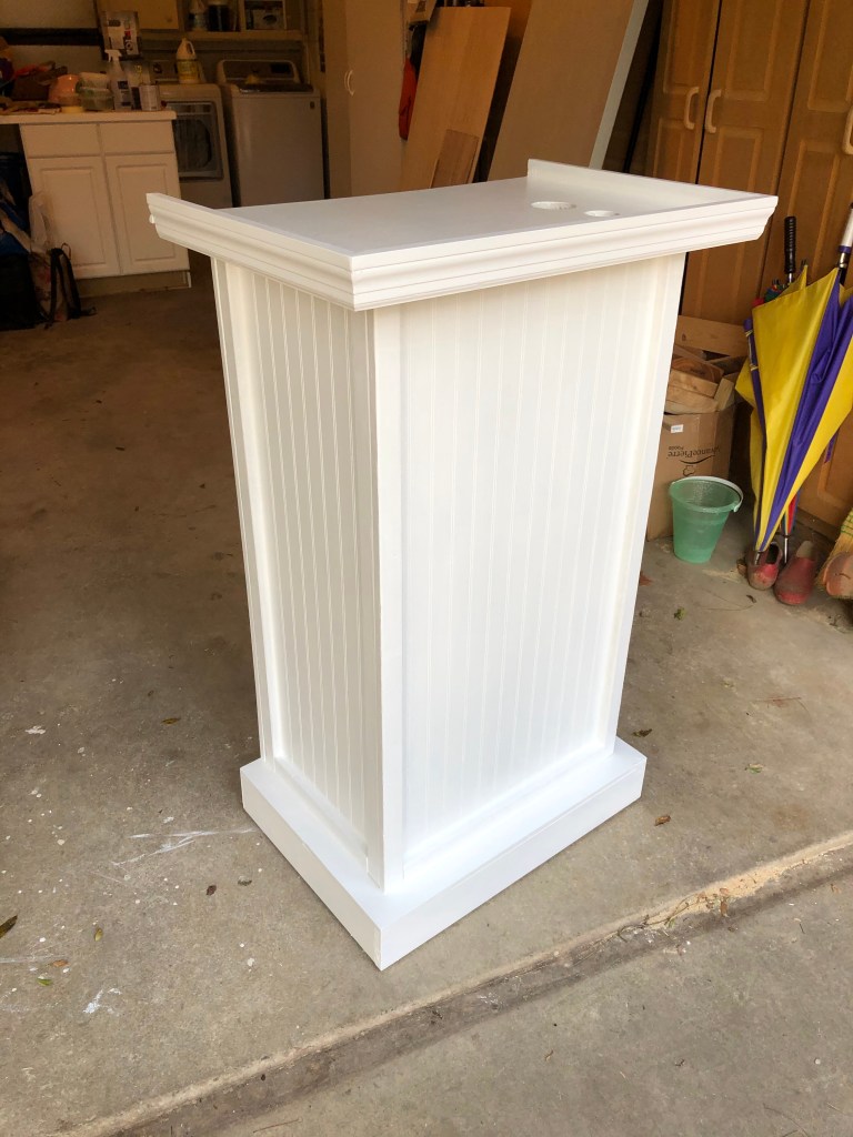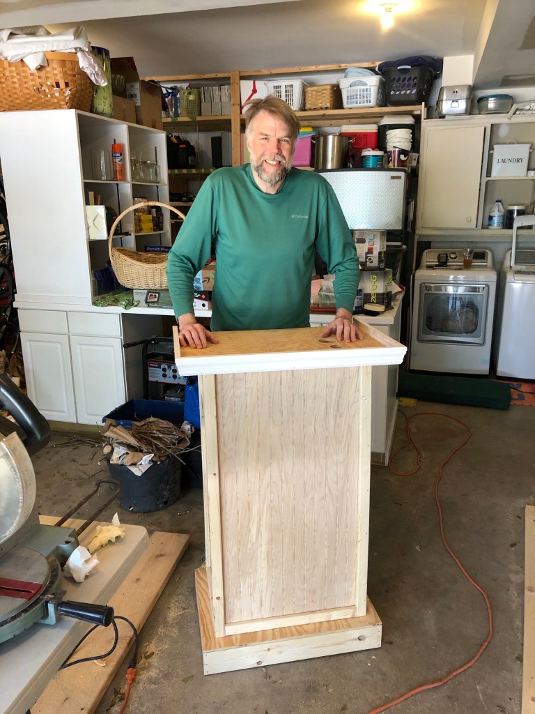 Then I had to go to Lowe’s to pick up materials to build a rolling lecture for our new fellowship hall at church. I had ordered one online and it was deemed a “piece of junk” so we sent it back. I searched every possible lectern seller and did not find any I liked u dear $5,000. That is just crazy. So I recruited Russ to help me build one we based on a design of an expensive one we liked.