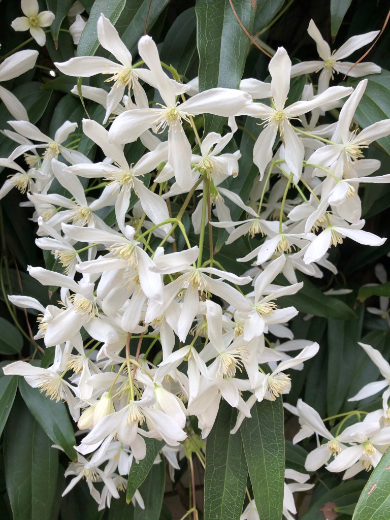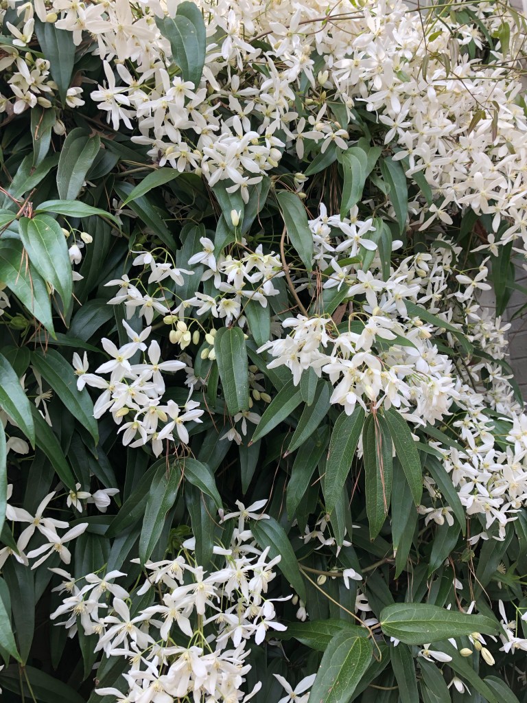 Oh, how I wish I had Smell-a-blog. The aroma of spring has surrounded my house. My Clematis Paniculata has encased my secret garden with a profusion of white blossoms and a scent that makes you feel like you are on a tropical island. I could sit outside and totally forget the whole last year if I just closed my eyes and took deep breaths of the citrusy floral perfume.