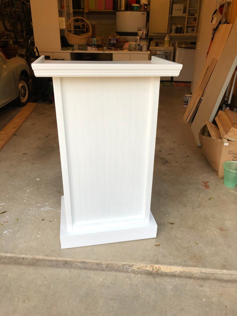 After my summer of painting all my kitchen cabinets I thought that I had an invincible painting arm. Now I was feeling my frailties. I think that trying to paint the inside of the lectern shelves, with the weird angle I had to hold myself at caused me strain on my painting arm. I was definitely in the minor leagues of painters since I had only primed the lectern.