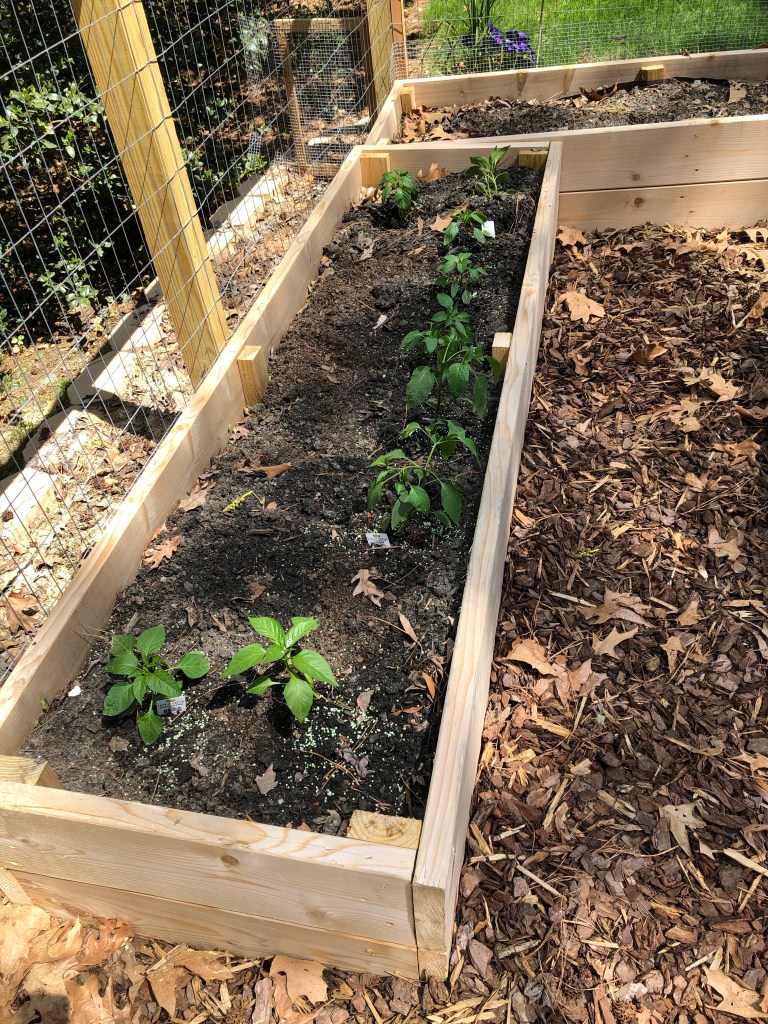 I did purchase a few squash plants and a symphony of peppers from sweet green all the way up to hottest red. I came home and wanted to get these things in the beds so they could take full advantage of the 85°day.