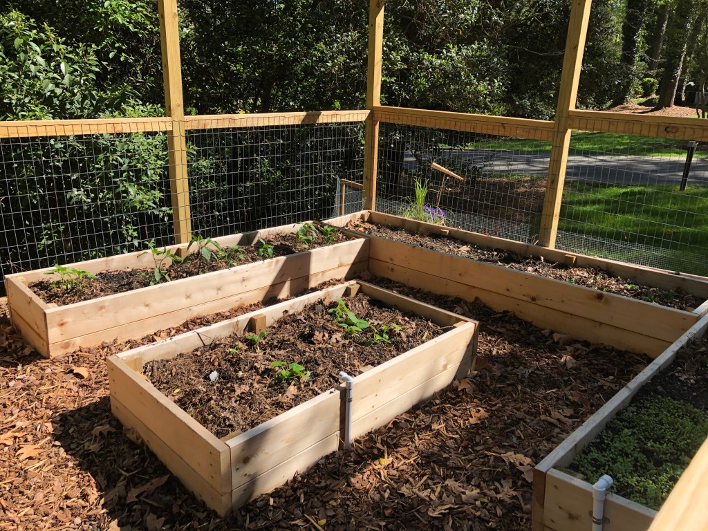 I did no amending of any soil before planting. I planted on the same day and have watered the same amount. Today I did add mulch between the rows of the raised bed, because I could clearly see where the seedlings had come up. The street bed seedlings are behind a little from the raised bed so I have not mulched that bed yet.