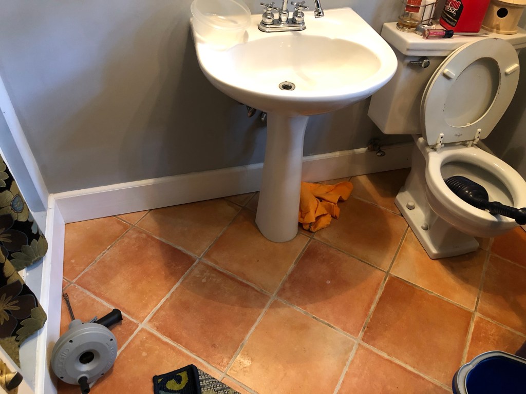 In my continuing quest to clean everything in my house in anticipation of the time when I am not stuck here I made a rookie mistake. While cleaning out the refrigerator I put too many sticky and bulky items in my disposal. I was not alerted to this mistake until I went downstairs to my office and smelled the vinegar smell coming from the bathroom. The bathroom sink is the lowest point in my kitchen sink line and if I back up the kitchen sink it comes out in the bathroom. It was a lovely combination of smelly items pouring out over the sink onto the bathroom floor.