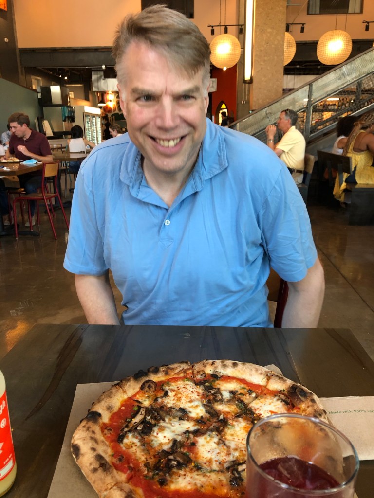 This was the first lunch out in Durham Russ and I have had together in 15 months. We went to the Durham Food hall, down by the farmer’s market because they just recently opened up for inside seating. There are a number of little stands in the Food Hall and we thought it would be nice to eat amongst other humans who were also dressed in regular, read non-athletic, clothes.