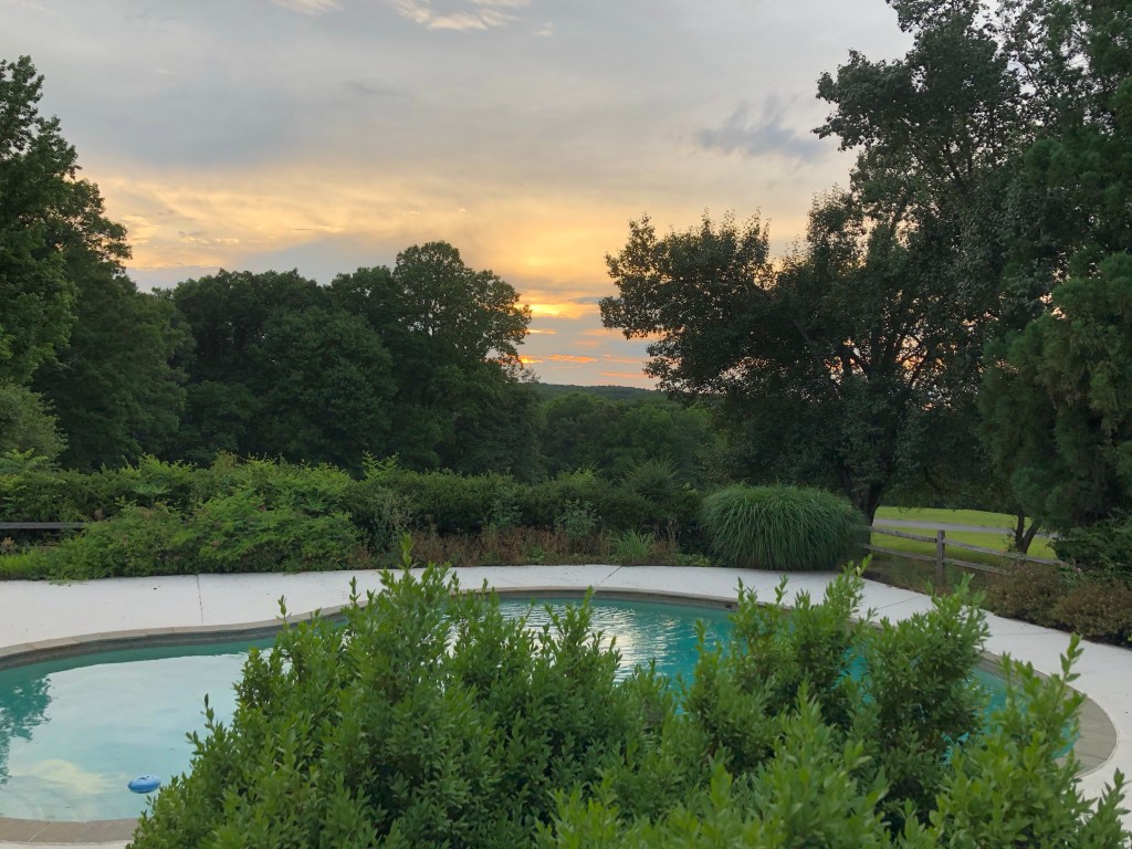 I went back to my parent’s old house and cleaned up to go to dinner and as I was walking out the side porch I noticed a rouge bag of trash that need to go to the dumpster. I threw it in the back of my car and drove over to my office barn, when the dumpster is parked. After I tossed the bag in I looked out over one of the many ponds my father has built on the farm. It was the golden hour where the sun was just dipping to the tree line and the light glistened on the ripples of the water.