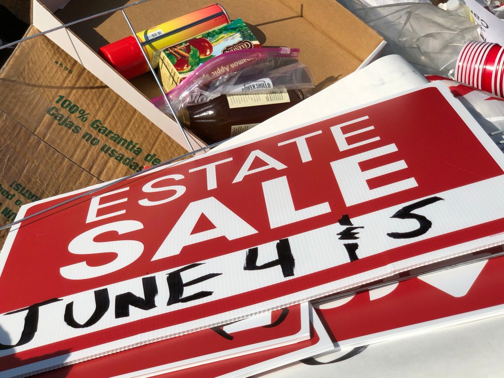 I threw each old sign in the back of my car and after getting the last big one at the intersection of the two main roads I turned around and drove back to the the dumpster by my Dad’s office barn. This estate sale was done.
