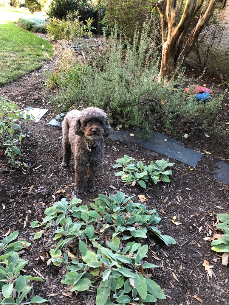 Shay turned her head and looked back at me and gave a little nod from me to join her in the splendor of the tree. She never went potty, instead she sat down and looked up at the tree for a good five minutes. There were no squirrels or other entertainment, just the beauty of the tree. I tried to capture her looking up at the tree, up it when she caught me she ran into the herb garden and posed there. I think she felt like she could never compete with the glory of the tree. It was a sweet few moments I was happy to share with Shay.