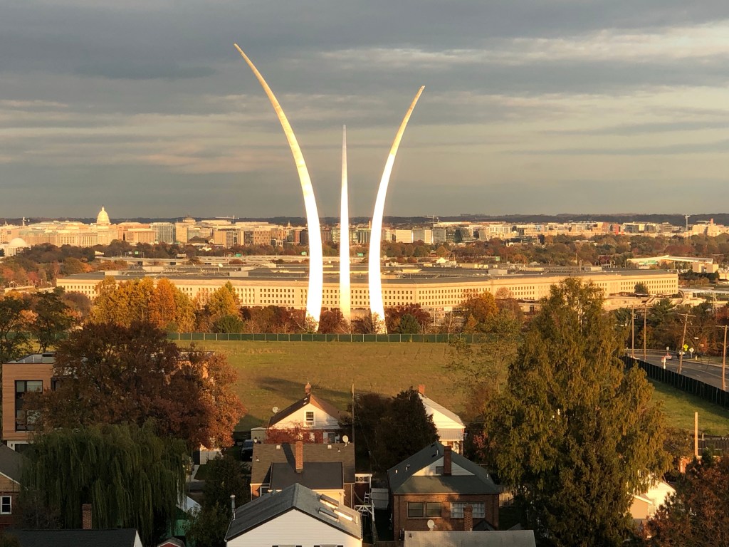 By the time we were done it was time to go back to out hotel to meet Suzanne and get ready for the party. Our hotel was in a strange location Sandwiched between Arlington cemetery and the highway, but all our rooms had the most fabulous view of all of DC and the air force memorial in the foreground. While Carter, Suzanne and I caught up in my room the sun started to set bathing the memorial in a beautiful orange glow.