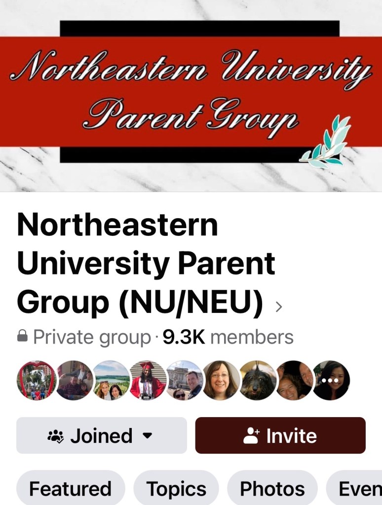 I have officially moved from being the payer of tuition to nothing when it comes to NEU. My daughter is the alum. So thanks for the wonderful connection to the school, Northeastern Parents Group. I loved being part of you.