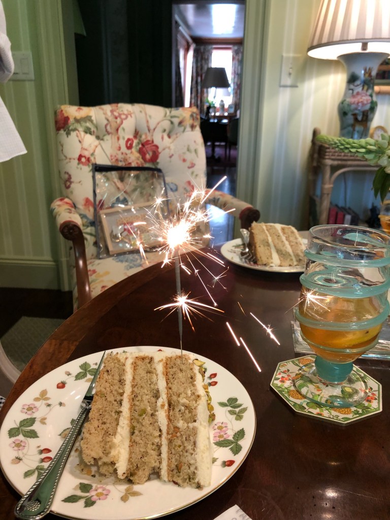 Posted: June 6, 2022 Filed under: Uncategorized 1 CommentThere is nothing sweeter than the love of a friend. OK, there is nothing sweeter than a friend who loves you enough to give you cake. No wait, there is nothing sweeter than a friend who bakes you a homemade birthday cake. Well, it is sweeter if she shells the pistachios to make the cake. Doubly sweet if the recipe calls for two cups or pistachios.