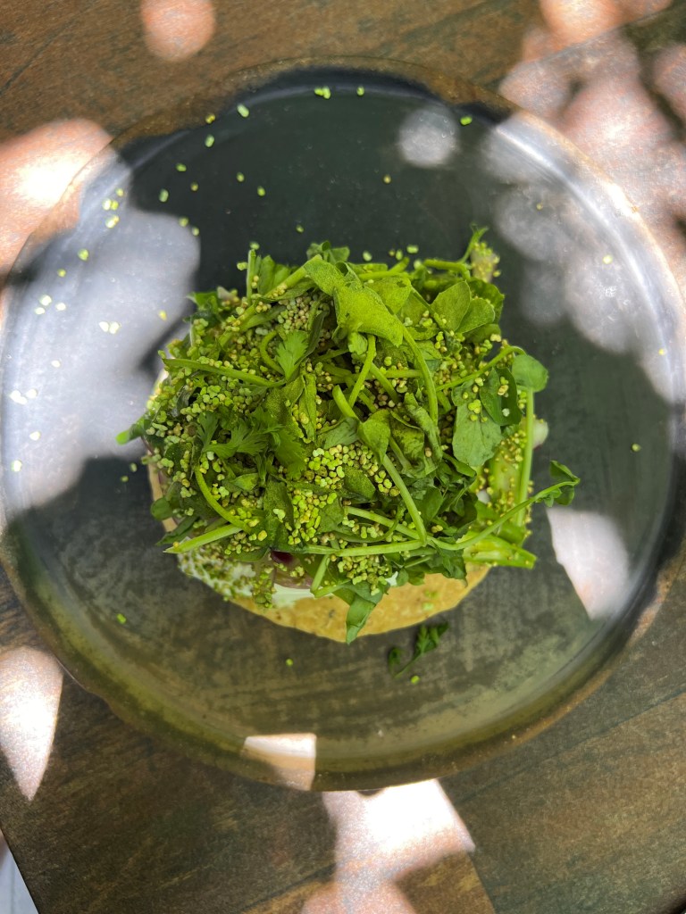 Not the best way to start our day. We spent it in Brooklyn, exploring and eating at interesting places. Lunch was at a place Carter had seen in a documentary about the history of food. It is called Claro and we sat in their garden under a grape arbor. I was not hungry since I had a bagel for breakfast, but Russ and Carter had a lovely lunch.