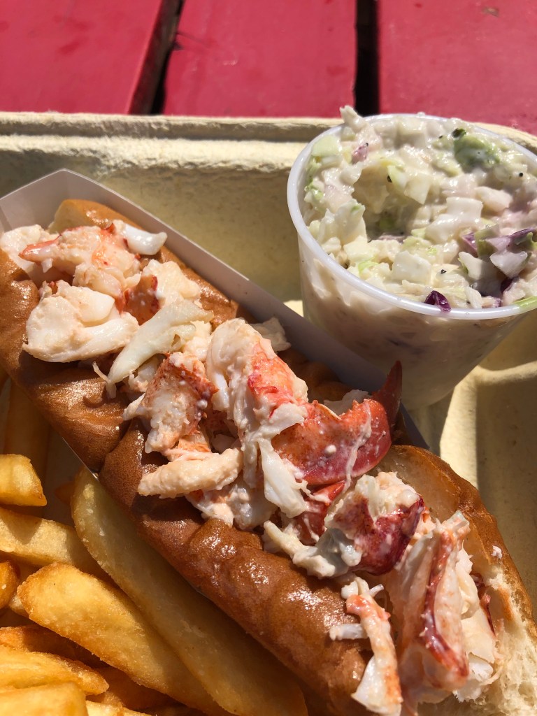 We ate lobster at many different places in Maine, staring in Kittery at Bob’s clam hut on my way up to Owls Head. Our house was not far from the Down East Magazine winner for best lobster roll, McLoon’s. They must do a good job begging people to vote for them because it was my least favorite. Nothing wrong, just a lobster roll. Now if I were in Durham and had McLoon’s nearby I would get a lobster roll any day, but here in Maine the competition is stiff.