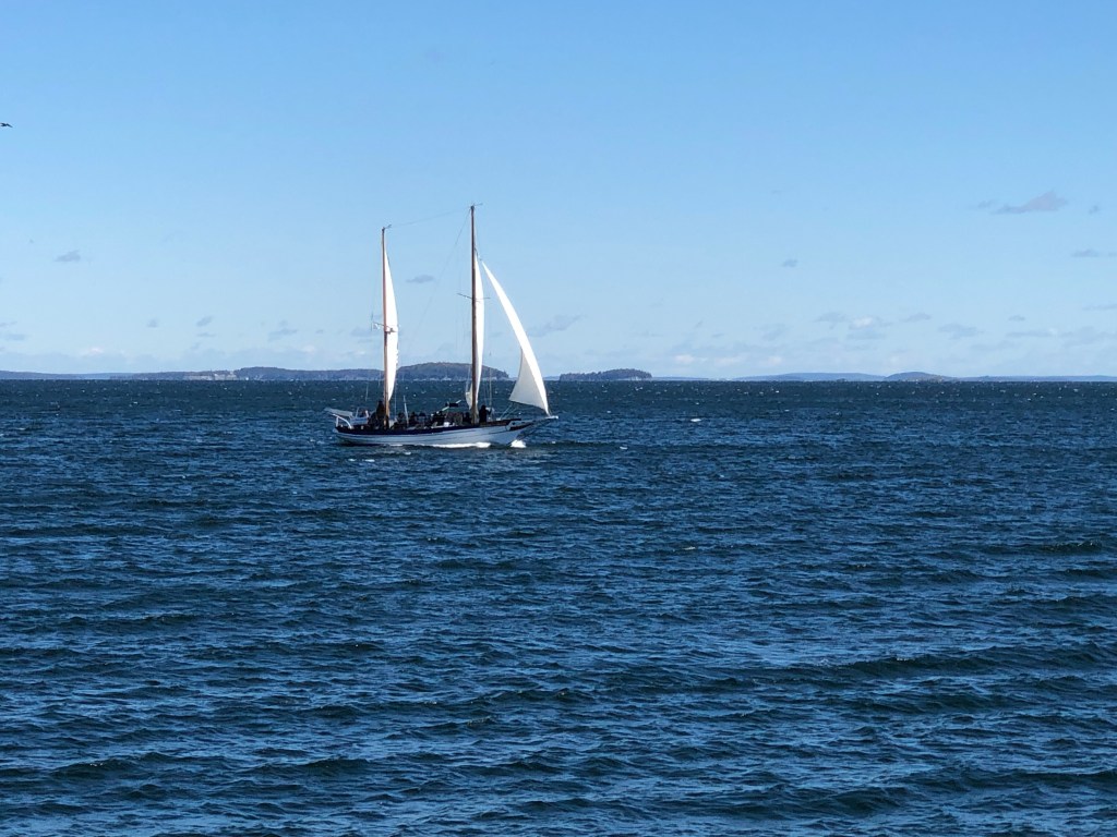 Posted: September 6, 2022 Filed under: Uncategorized Leave a commentIt’s Carter’s last full day visiting us in Maine. We have had a fun week even though she has had to work some. It started out as a gray day. I was happy we were not on the schooner sailing by our house this morning.