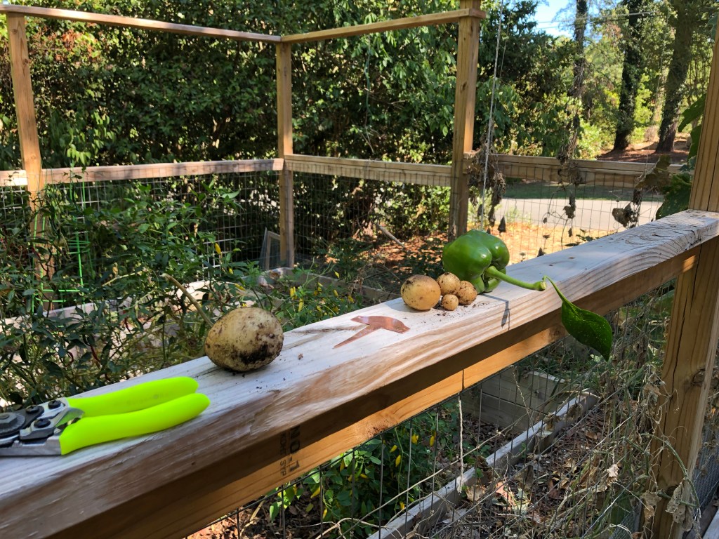 Then we proceeded to pull everything out of the ground, the zucchini plant that had grown eight feet outside its bed, the okra plants that reached ten feet in the air with inedible pods eleven inches long, and tomatillos that finally produced hundreds of fruit.