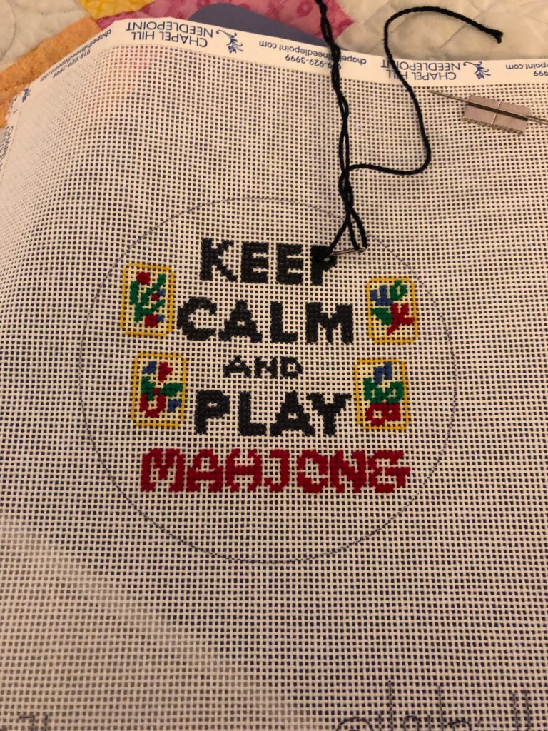 I like when my hobbies overlap, like is the case with this Mah Jongg ornament I just started needlepointing. The best part about hobbies is the friends you make in doing them. I have made hundreds of new friends teaching Mah Jongg. And I spend quality time regularly with my Mah Jongg friends playing. I have multiple stitching groups in needlepoint. Spending time together sharing our hobby is more regular than time just spent randomly with friends.