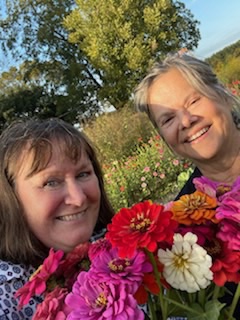 When I asked Jane where I should get flowers to bring to Kristi and her husband Ken she said, “We can go cut them from Warren’s flower bed he grow at the farm to sell.” So after class we visited the farm, the same one made famous by Warren’s role on the PBS series “The Chef and the farmer.”